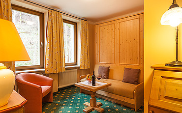 Möchten Sie in den Ferien auf einen großen Wohnkomfort nicht verzichteten so empfehlen wir unsere Suite mit einem Schlafzimmer, Wohnbereich, Bad/WC, Fön, Telefon, Radio, Kabel-TV, WLAN, Safe, Minibar und Balkon.